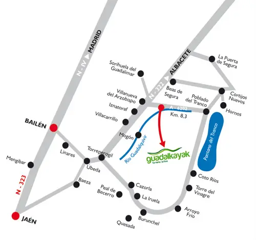 Si vienes desde el interior del parque debes llegar hasta la altura de la presa del tranco y en el mismo poblado tomar dirección Villanueva del Arzobispo carretera A-6202, kilómetro 8.3.
